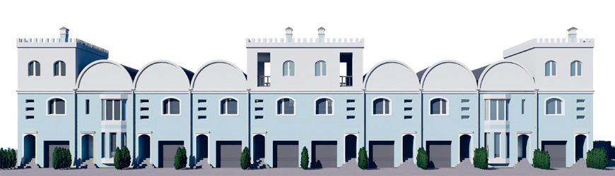 Сегодня Марокканские таунхаусы сданы в эксплуатацию, придомовые территории оформлены, озеленение высажено, коммуникации подведены.