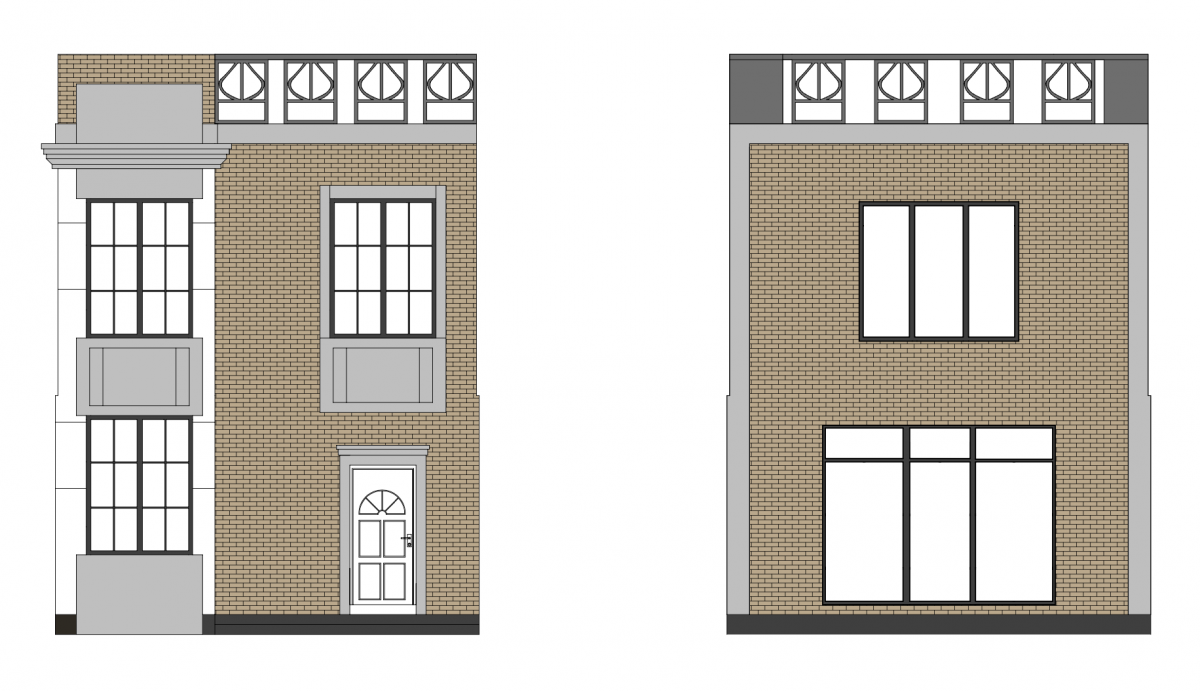 Обрамлення віконних прорізів виконано з відшпакльованого та пофарбованого пінополістиролу згідно з дизайн-проєктом.
