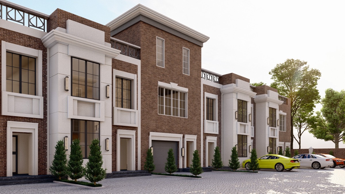 це двоповерховий таунхаус із підземним функціональним поверхом, максимальною житловою площею, еркерним виносом і величезними вікнами. Внутрішня чистова ширина таунхауса 5,7 метра. Площа одного поверху 86 м кв. Загальна площа таунхауса 260 м2. До кожного таунхауса прилягає ділянка землі - задній двір 54 м2. А також 2 паркомісця перед кожним таунхаусом.